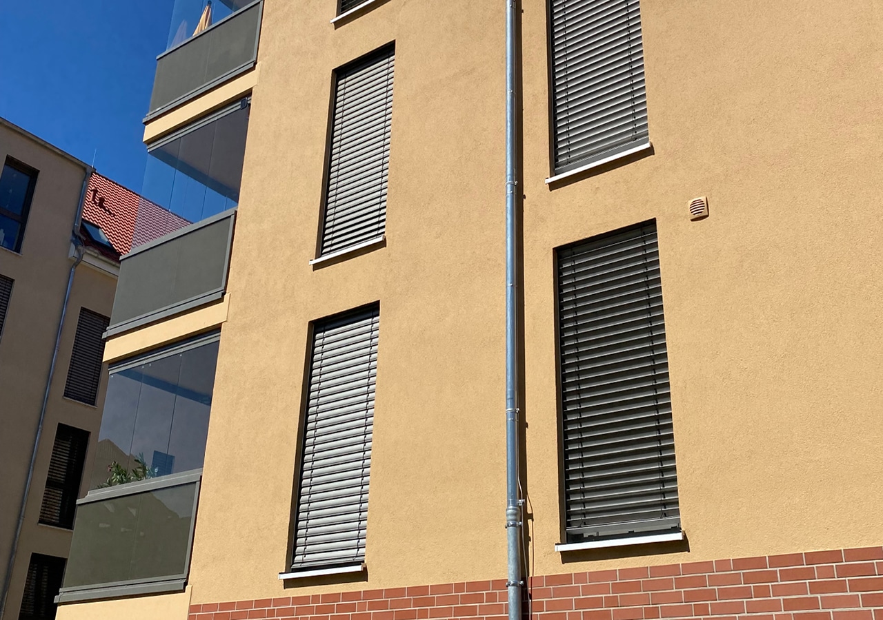 Die verbauten Außenraffstore-Anlagen überzeugen durch ihre hochwertige Verarbeitung, langlebige Materialien und ein modernes Erscheinungsbild. Sie fügen sich harmonisch in die Fassadengestaltung ein und unterstreichen den zeitgemäßen Charakter der Wohngebäude. Gleichzeitig bieten sie eine komfortable Bedienung und ermöglichen eine flexible Anpassung an unterschiedliche Licht- und Wettersituationen.