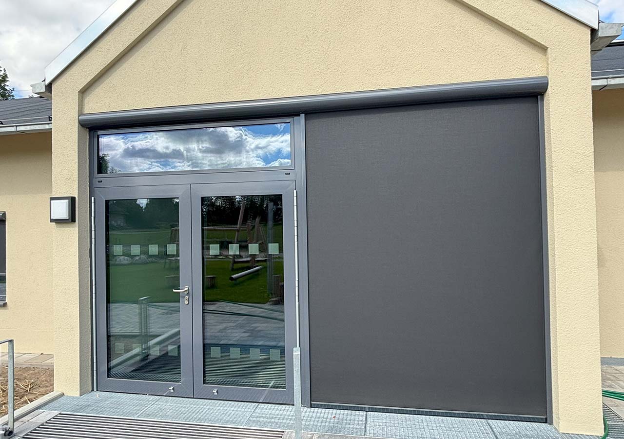 Gerade bei Bestandsgebäuden spielt die gezielte Steuerung von Licht und Wärme eine entscheidende Rolle. Große Fensterflächen sorgen für helle Räume, können jedoch ohne passenden Sonnenschutz zu Überhitzung und Blendung führen. Die eingesetzten ZIP-Screens bieten hier eine effiziente Lösung: Sie reduzieren den solaren Wärmeeintrag bereits vor der Fensterscheibe und schaffen ein angenehmes Raumklima – ideal für den Hortbetrieb.